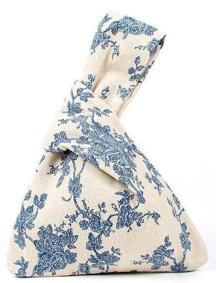 Grab-N-Go Linen Wristlet Hand Bags – Blue Flowers